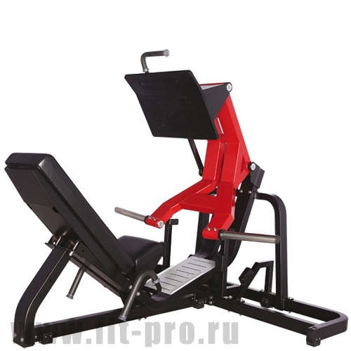 Профессиональный жим ногами. Нагружается дисками 50 мм (приобретаются отдельно). Цвет рамы комбинированный: черный/красный. Цвет обивки - черный.