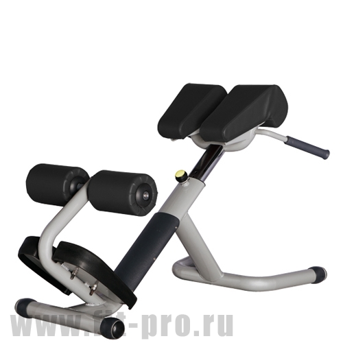 Гиперэкстензия для коммерческого использования. Регулировка по высоте. Цвет рамы - серебро. Цвет обивки - черный.
