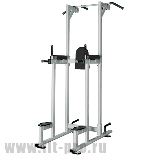 Стойка Турник-пресс-брусья для коммерческого использования. Цвет рамы - серебро. Цвет обивки - черный.