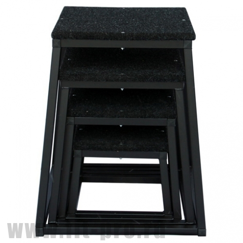 Комплект плиометрических боксов (тумбы для запрыгивания) используются главным образом для прыжков, которые развивают взрывную мышечную силу. Рама изготавливается из квадратной трубы с профилем 30х30 мм. Верхняя платформа выполнена из фанеры и имеет противоскользящее ковровое покрытие. Коническая форма придает гораздо большую устойчивость и позволяет более удобно укладывать их для хранения.
